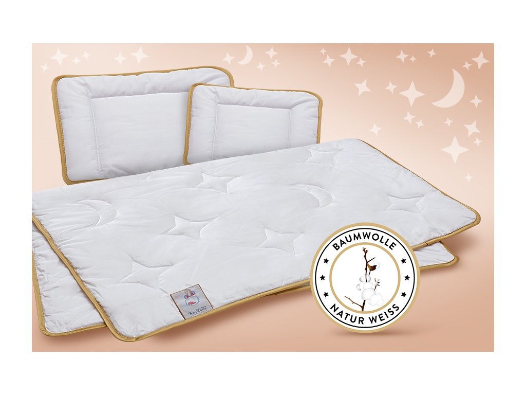 Dětský set pro větší miminko pak tvoří polštář 60x40 cm (100g) a přikrývka 100x135 cm (300g).