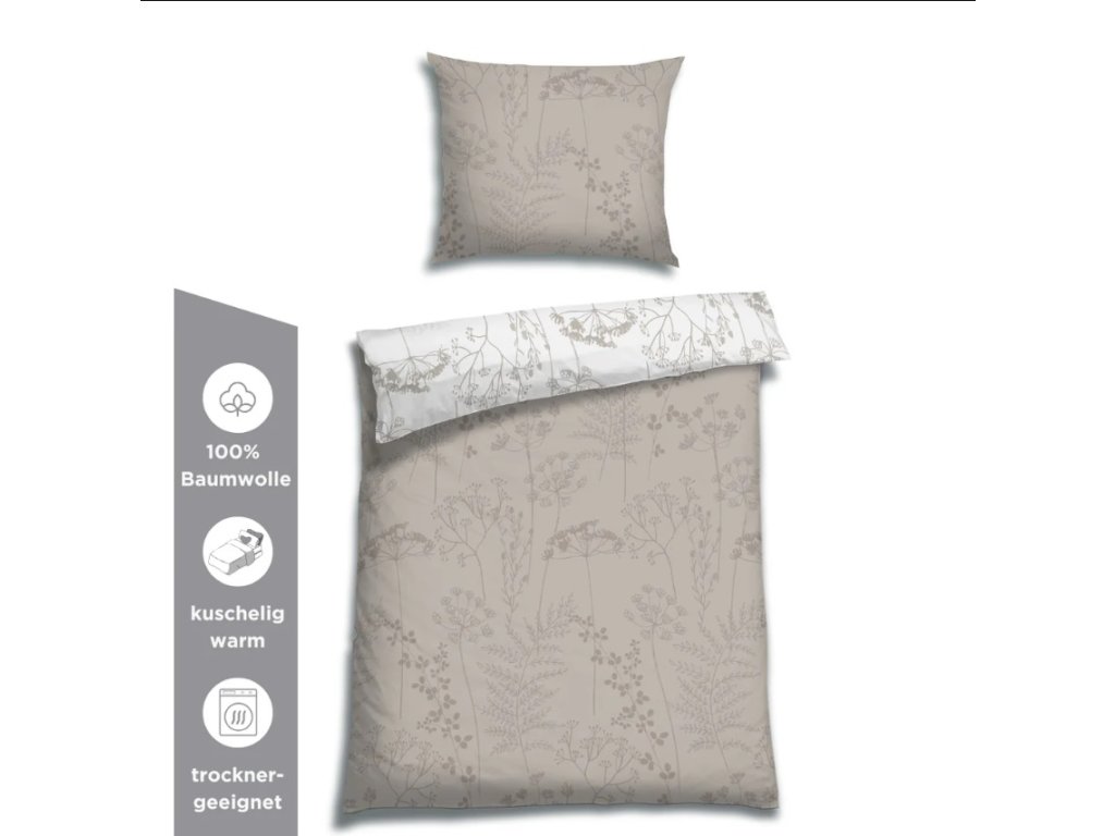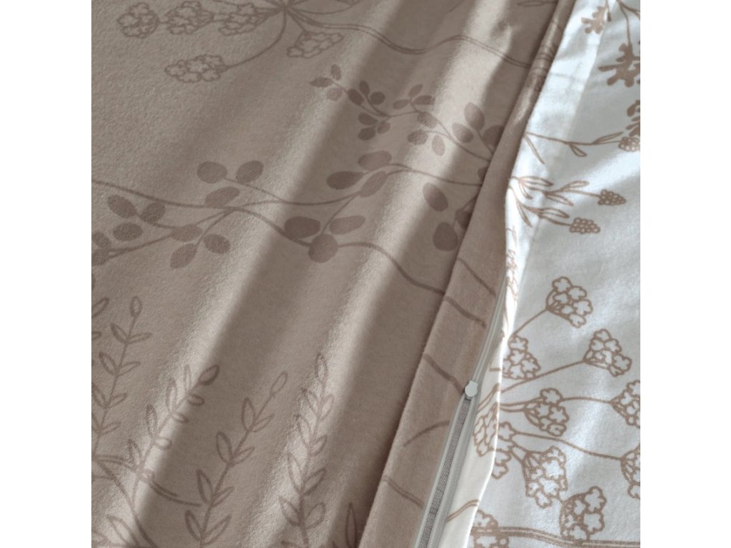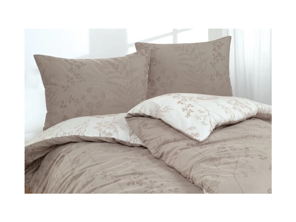 Hra se stíny a obrácené zbarvení činí tento design obzvláště atraktivním. Znázornění kapradin, pupečníků a stonků, redukované na linie a kontury, působí jako otevřená kniha herbáře. Jemný stín na přední straně dodává designu živou hloubku, obrácená zadní strana je atraktivním vizuálním doplňkem, který dotváří sofistikovaný oboustranný design jako celek. Extrémně jemné béžové zbarvení v kombinaci se zářivě bílou dělá tuto hru ještě elegantnější. Oba povlaky jsou na zip s robustním kovovým jezdcem.