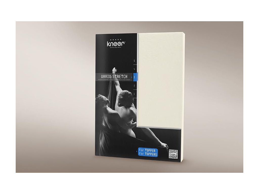 Tkanina prostěradla Vario Stretch ve smetanové barvě od firmy Kneer o vysoké hmotnosti 190 g/m2 je navržena z bavlny Jersey 50% (měkká, elastická pletenina) 45% modalu (celulózové vlákno vyráběné převážně z bukového dřeva s vysokou přužností a pevností) a 5% elastanu, díky které prostěradlo krásně padne na topper až do výšky 12 cm. Prostěradlo je tvarově i barevně stálé i po mnohačetném praní. Podél celého obvodu je našita guma, díky které se prostěradlo pohodlně fixuje k podložce nebo topperu.
