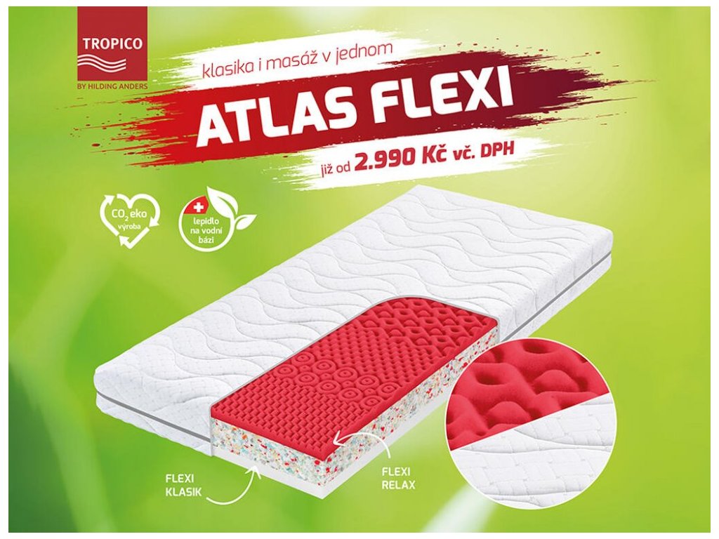 | materiál jádra | Flexifoam®, RekoGreen vzdušná pěna v jádru matrace |
