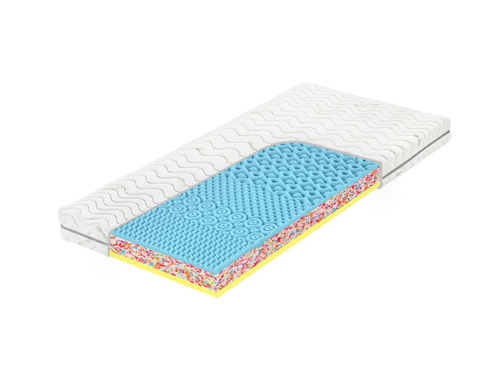 Kvalitní tužší ortopedická matrace vyrobena z pěny Flexifoam® a visco líné (paměťové) pěny na ložné ploše. Ložná plocha s línou pěnou je opatřena anatomickými zónami s masážním profilem, které poskytují lidskému tělu uvolnění a relaxaci.