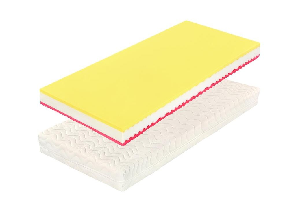 - Zóny matrace: Tužší strana Classic (žlutá) - rovná masivní vrstva houževnaté pěny. Měkčí strana Relax (červená) - anatomická masážní profilace (7 zón).
