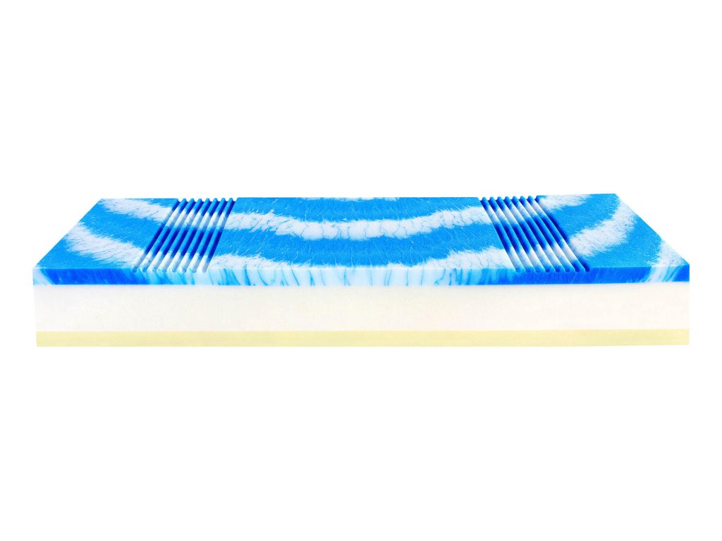- Geltouch Hybridní pěna (strana relax). Spojuje hebkost latexu s dokonalou distribucí tlaku gelových matrací. Vysoce prodyšná, napomáhá správné termoregulaci.