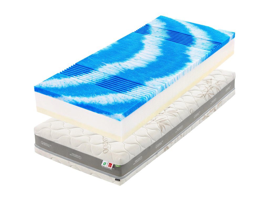 - Geltouch Hybridní pěna (strana relax). Spojuje hebkost latexu s dokonalou distribucí tlaku gelových matrací. Vysoce prodyšná, napomáhá správné termoregulaci.