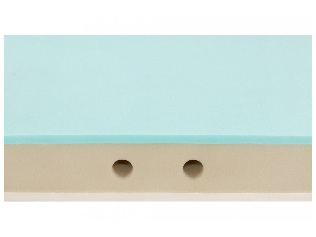 -Hybridní pěna- tyrkysová pěna - skvělá a nejodolnější pěna, která má vysokou odrazovou pružnost. Je krásně prodyšná a vzdušná, proto reguluje teplotu. Pěna zajišťuje vysokou podporu páteře při spánku, což je vhodné pro zdravý vývoj dětí. Výborně odvádí vzdušnou vlhkost.