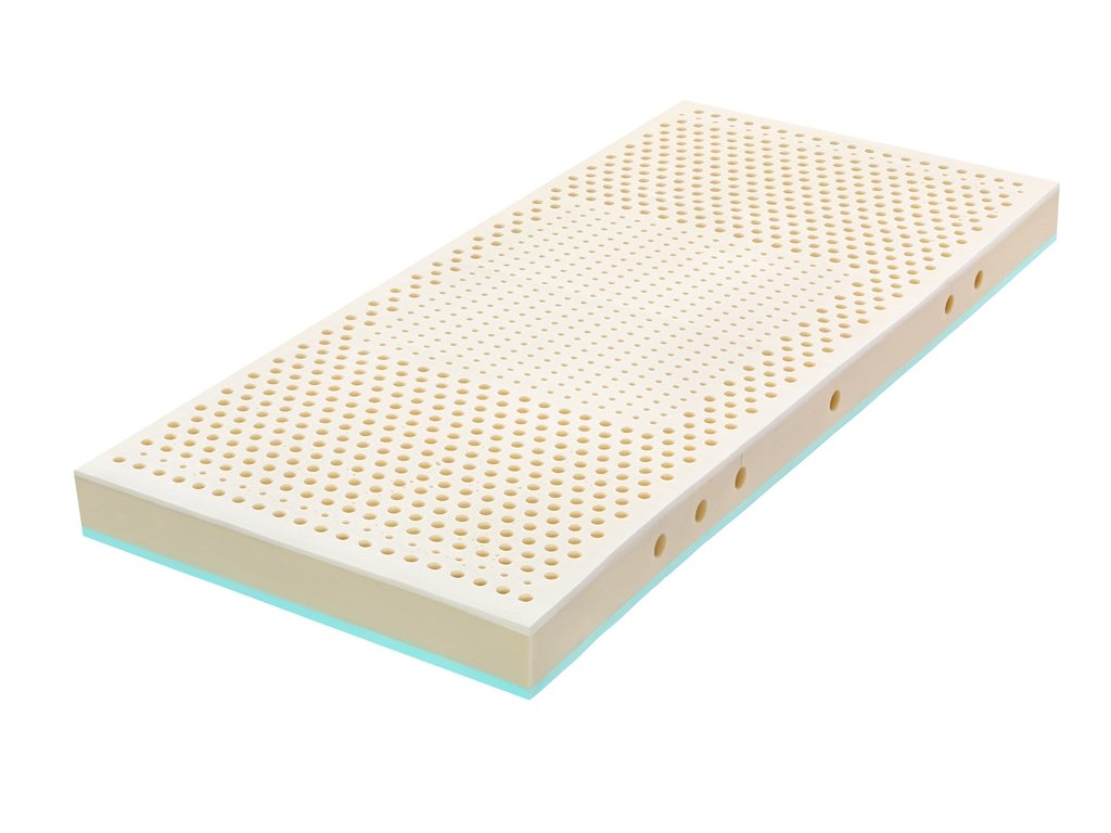 -Latex - bílá pěna - pružná, odolná, s podílem přírodních surovin a vysokou objemovou hmotností 60 kg/m3. Pohodlí, vzdušnost, vynikající ortopedické vlastnosti. Měkčí strana matrace.