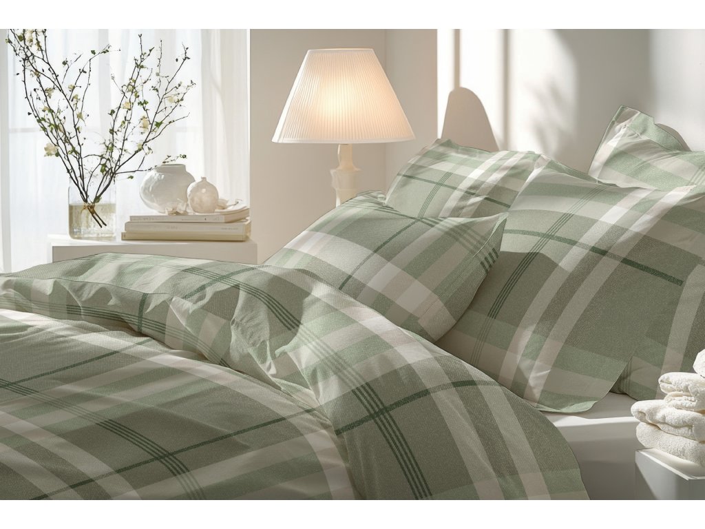 Hmatatelná harmonie – Tartan, nově pojatý. Tento design od rakouské značky AMAZING by Florella vás vítá ke spánku a zcela novým způsobem kombinuje tradici s elegancí. Tartan není křiklavý – šeptá. V jemných zelených tónech, prokládaných jemnou bílou, vytváří atmosféru klidu a bezpečí.