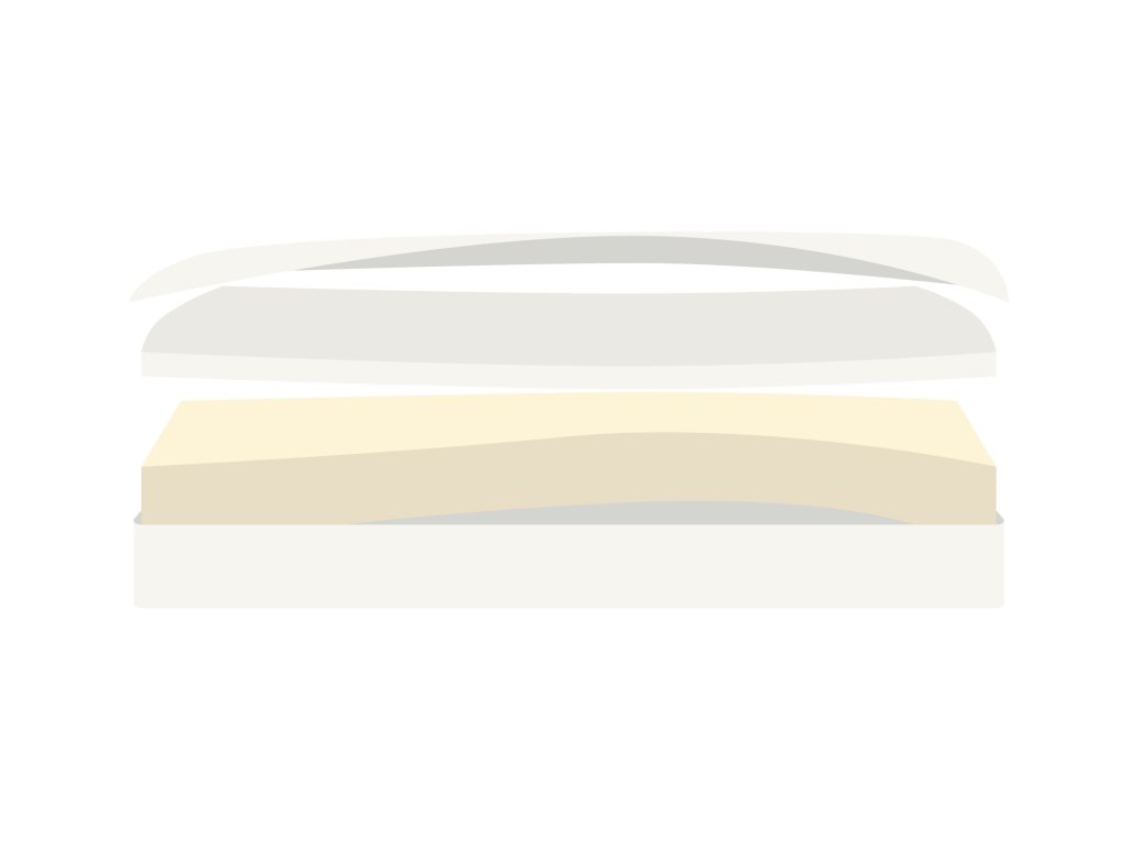 2) Základnu tvoří tzv. studená pěna (béžová pěna), která dodává matraci vyšší tuhost, celková výška této pěny je 16 cm a o hustotě 42 kg/m3 . Zaručuje velmi dlouhou životnost a komfortní podmínky pro milovníky tvrdších matrací. Oproti Pur pěně má studená pěna větší pórovitost, díky které dochází k lepší cirkulaci vzduchu a tedy následně k menšímu přehřívání a pocení během spánku. Dalším pozitivem je omezení výskytu plísní a roztočů a vy si tak budete moct užívat zdravějšího spánku. Charakteristickou vlastností je především dlouhá živnost a tvarová stálost. Tato strana matrace disponuje tvrdostí 8.