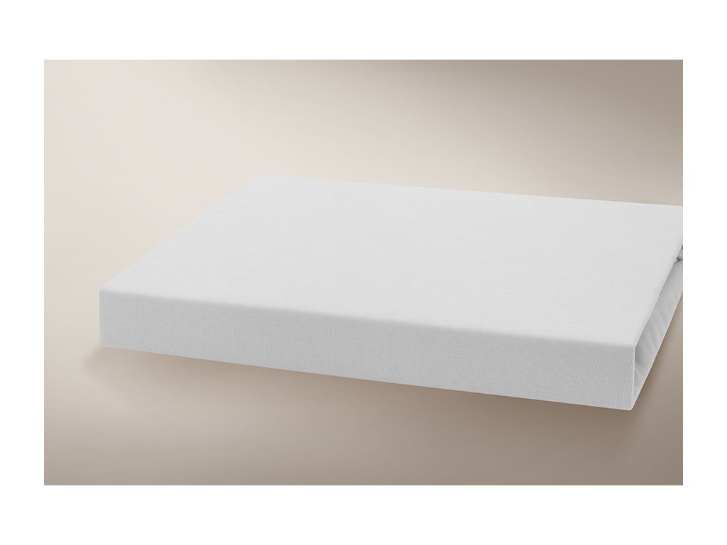 Tkanina prostěradla Fein Jersey v bíle barvě od německé firmy Kneer o hmotnosti 155 g/m2 je navržena ze 100% kvalitní mako bavlny, díky které prostěradlo krásně padne na matraci až do výšky 22 cm. Prostěradlo je tvarově i barevně stálé i po mnohačetném praní. Podél celého obvodu je našita guma, díky které se prostěradlo pohodlně fixuje k matraci.