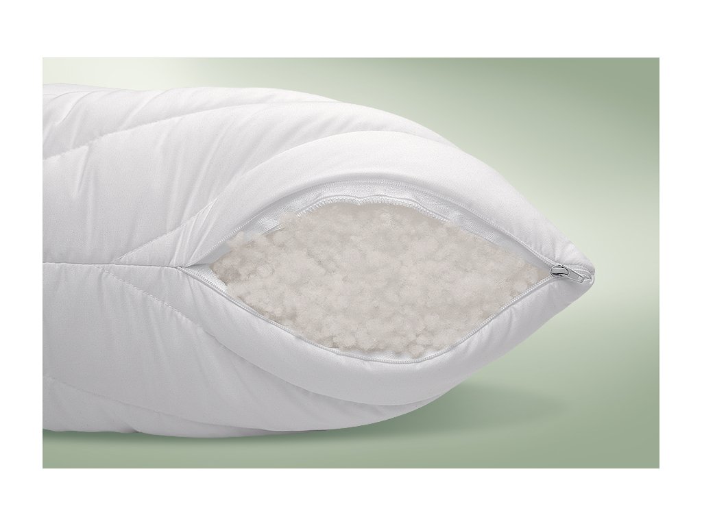 Náplň polštáře je tvořena z měkkých polyesterových kuliček (PES) a pružných polyuretanových tyčinek (PUR) a je uložena ve vaku se zipem u varianty zip+vak.